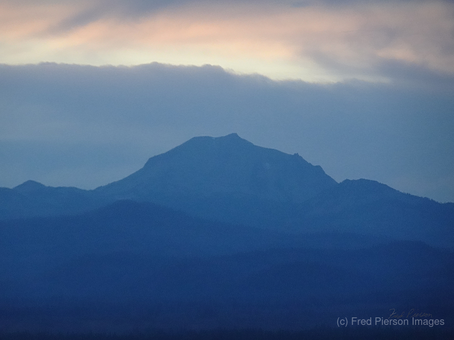 Mount Lassen rises in soft serenity, bathed in pastel hues that feel almost dream made. Light pink drapes the sky like the first blush of dawn, gentl...[+]