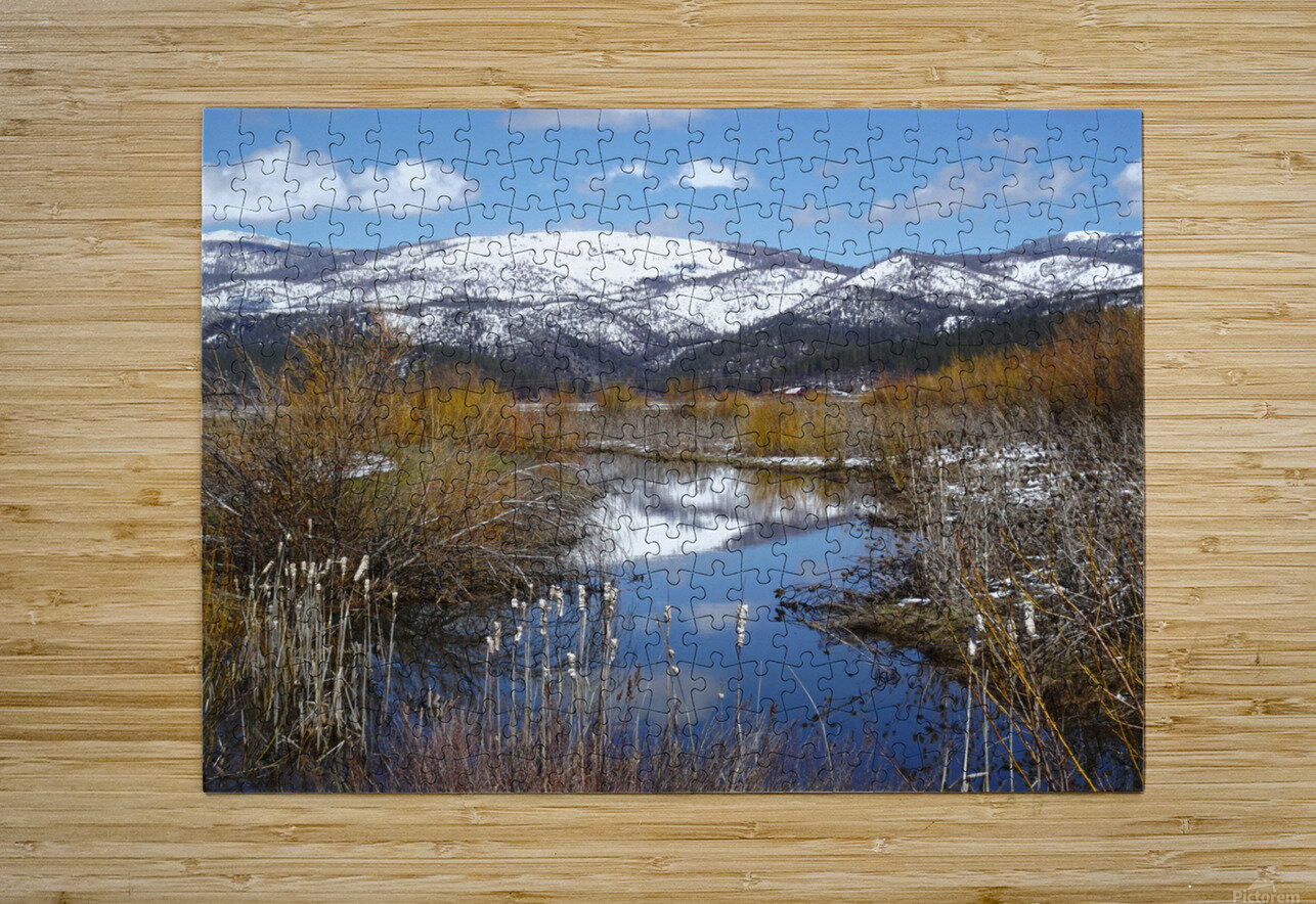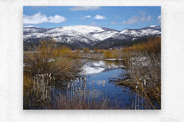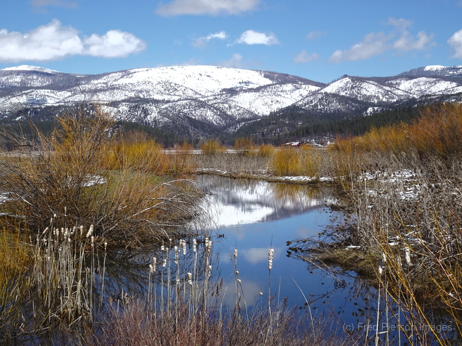 Every day I take a five to six mile walk near my home in Quincy California which is at the northern end of the Sierra Nevada mountains right before it merges with the Cascade mountain range coming down from Oregon through Northern California. On this one early winter day I was walking on the path through the ranch lands in the area and I saw this shot and just had to get it on film. The stream in the shot feeds into Spanish Creek which later merges with the Feather River. The snowcapped mountain in the background is Mount Hough which lies at the far end of the American Valley which is where I was standing. It was quite cold and I had to take special precautions so the lens would not get fogged up. After several minutes I was able to get this shot which really gives you a sense of the grandeur of these High Sierra mountains.