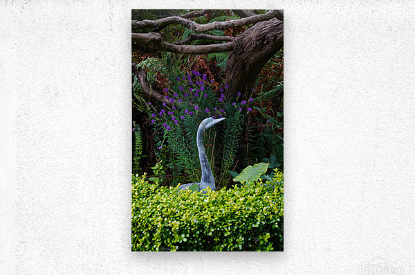 Ferndale which is situated in Humbolt County is the northern gateway to California’s Lost Coast. The city contains hundreds of well-preserved Victorian storefronts and homes. One of best examples of these is the Gingerbread Mansion also known as the Ring Mansion located at 400 Berding Street which is currently operating as a wonderful bed and breakfast hotel. My wife and I were fortunate enough to stay there on a trip up the coast of California and Oregon. The area is a photographer’s dream with its lush foliage and muted lighting. I went out several times photographing the area while we were there. Usually I would take long walks looking for that perfect shot and never stay too close to the mansion but I would return disappointed. One morning when heading out I noticed this one area of the mansion garden I had never seen before and there was this stoic stone crane perfectly framed with the surrounding foliage and I captured this shot. If you ever have a chance to visit this area the Gingerbread Mansion should be a definite item on your itinerary.