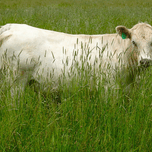 Contented cow enjoying himself with lots to eat.
